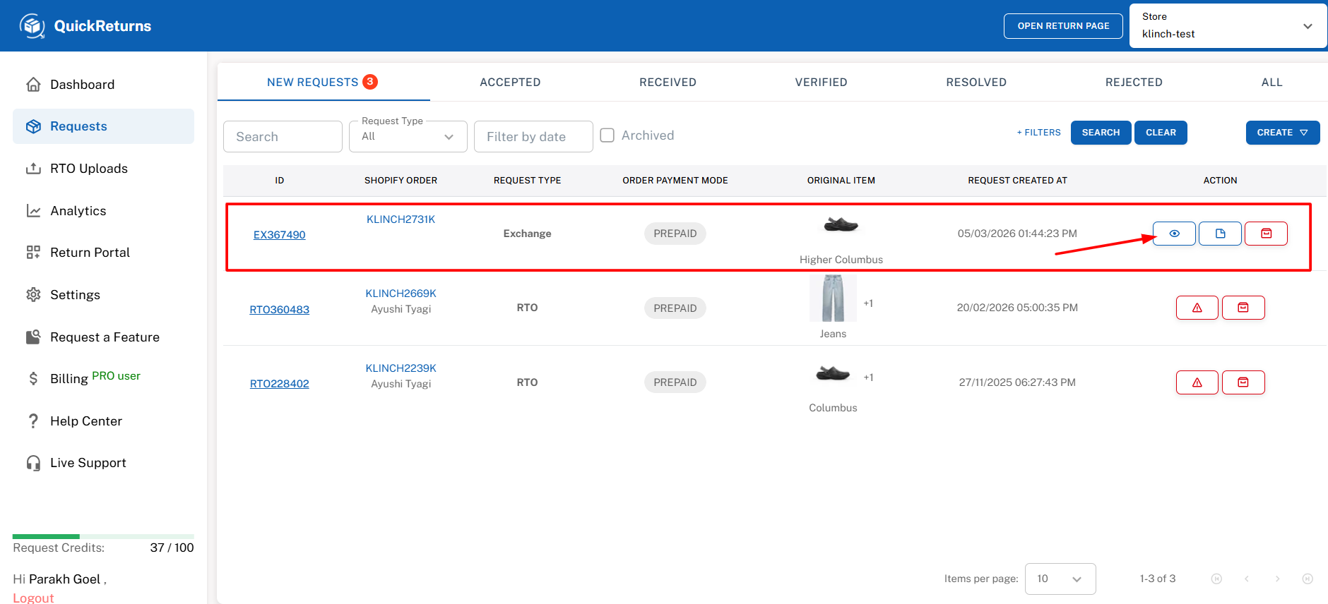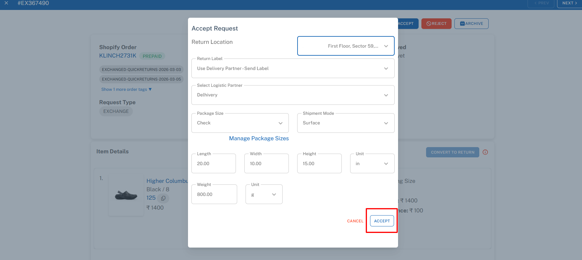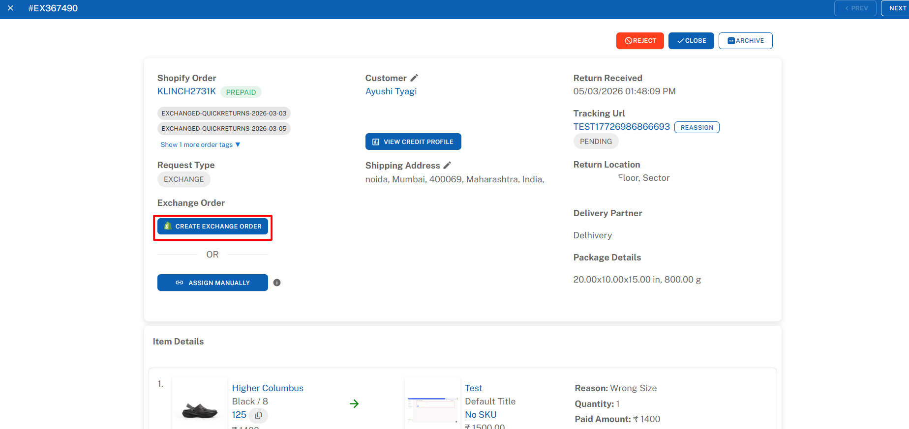 By following the above steps, you can successfully test the entire return/exchange flow, from request creation to request processing.