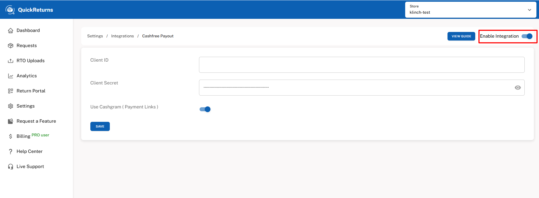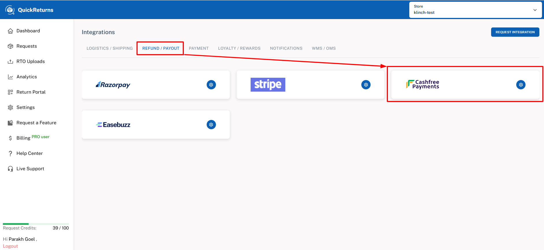 We are going to learn how to connect the Cashfree with QuickReturns to refund the requests, without going anywhere, We would need the below credentials: