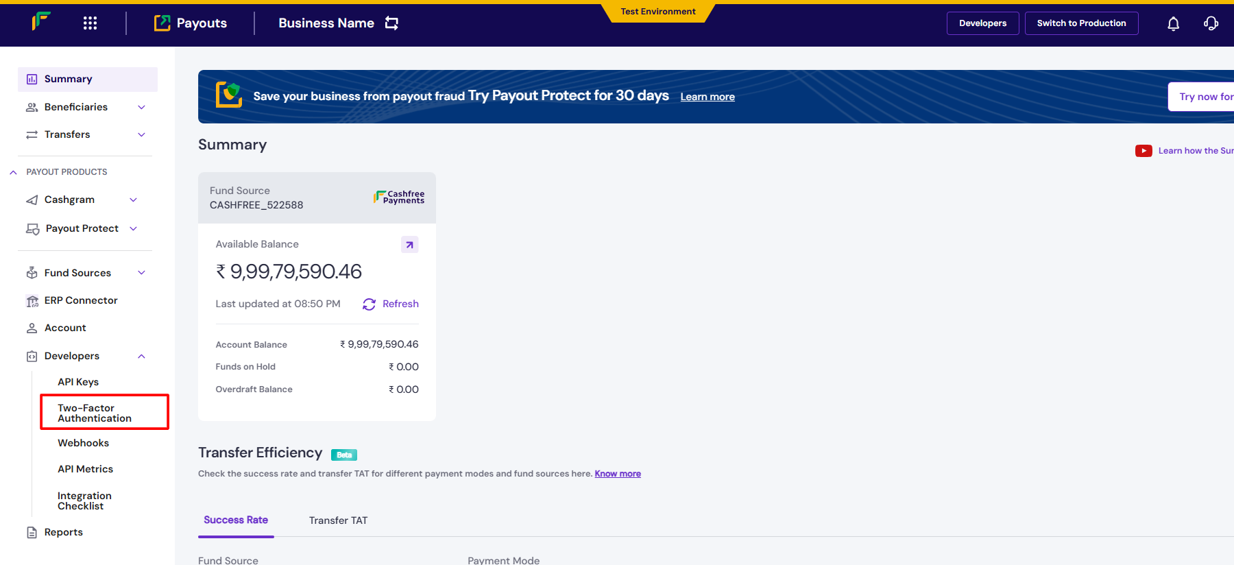 Step 7: Click on "Two-Factor Authentication" under the Developers Tab.