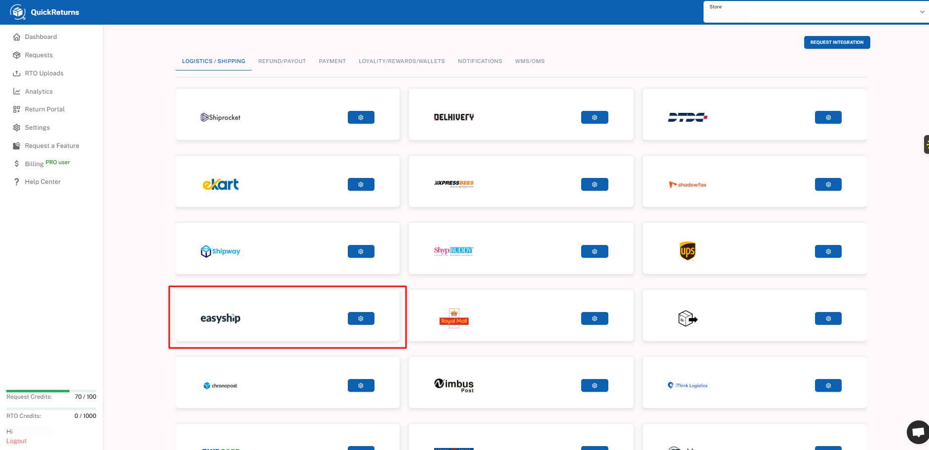 Once completed, your QuickReturns will be integrated with Easyship, allowing you to generate reverse pickups directly from QuickReturns.