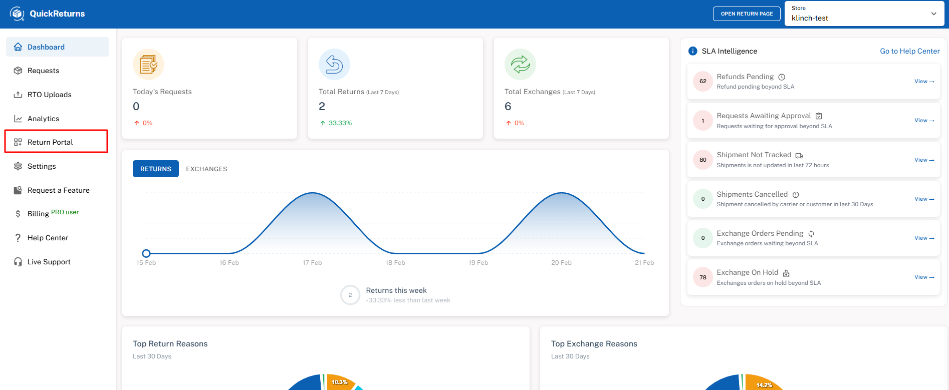 Step 1: Login into your QuickReturns Dashboard and click on the Return Portal tab