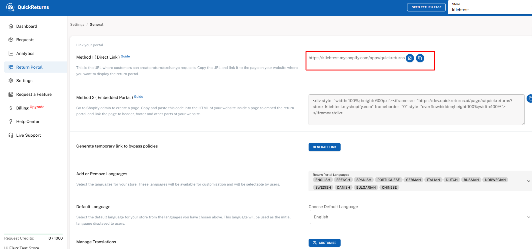 Step 6: You are all set now. Your customers or users can use this link to raise a return or exchange request.